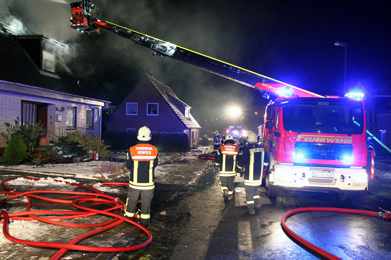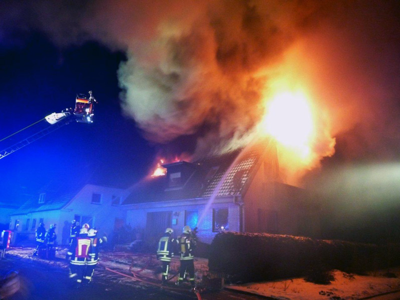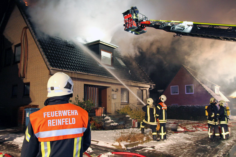 Die Freiwillige Feuerwehr Reinfeld wurde zu einem Feuer im Dachstuhl eines Einfamilienhauses alarmiert. Beim Eintreffen der ersten Kräfte schlugen bereits Flammen aus dem Dach.