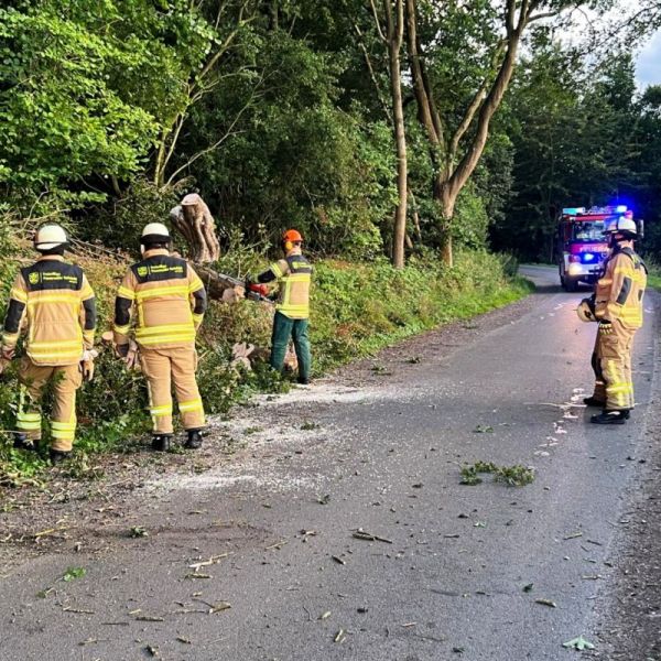 Später wurden wir noch in den Poggenkamp alarmiert. Hier drohte eine Ast auf die Fahrbahn zufallen. Gemeinsam mit der Drehleiter aus Bad Oldesloe wurde der Ast entfernt.
