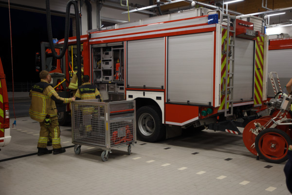 Am Dienstagabend trafen sich fünf Kameraden an der Feuerwache, um die Fahrzeugpflege des HLF1 durchzuführen. Im Rahmen der Fahrzeugpflege wurde das Fahrzeug komplett entladen, ausgefegt und feucht ausgewischt. Nach dem Trocknen wurde das Material wieder ordnungsgemäß verlastet. Anschließend wurde das HLF1 in der eigenen Waschhalle auch von außen gründlich gereinigt. - Nach getaner Arbeit gab es für alle zur Stärkung frisch gegrillte Würstchen im Brötchen sowie etwas zu trinken.