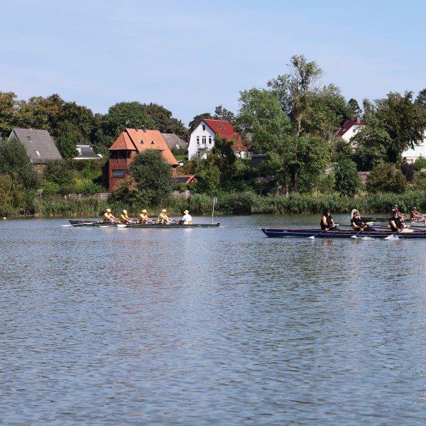 Parallel zu den Regatta-Wettkämpfen waren wir mit unserem Boot auf dem Herrenteich stationiert, um bei Problemen oder bei einem "Mann-über-Board" schnell zu Hilfe eilen zu können. - Die einzelnen Teams waren perfekt auf das Event vorbereitet und unsere Mannschaft auf dem Boot musste zu keiner Zeit eingreifen.