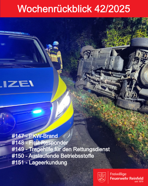 Unser nächster Einsatz am Donnerstag galt in den frühen Morgenstunden einem Verkehrsunfall mit einem alleine beteiligtem PKW bei dem Betriebsstoffe auslaufen sollten. Vor Ort stellte sich heraus, dass keine Betriebsstoffe ausliefen und ein Eingreifen durch uns nicht erforderlich war. Daher übergaben wir die Einsatzstelle im Anschluss an die Polizei. (150)