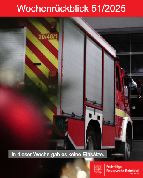 In dieser Woche blieb die Feuerwehr Reinfeld einsatzfrei - keine Alarmierungen für uns.