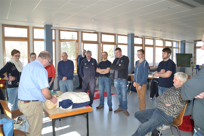 Maßnahmen der Ersten Hilfe, Herz-Lungen-Wiederbelebung, Blutdruck- und Blutzucker- Messung, Anlegen von Verbänden, Transport von Verletzten, Betreuung von Verunfallten, Zusammenarbeit im Team und der Umgang mit den im Sanitätsdienst üblichen Materialien standen auf dem Lehrplan.