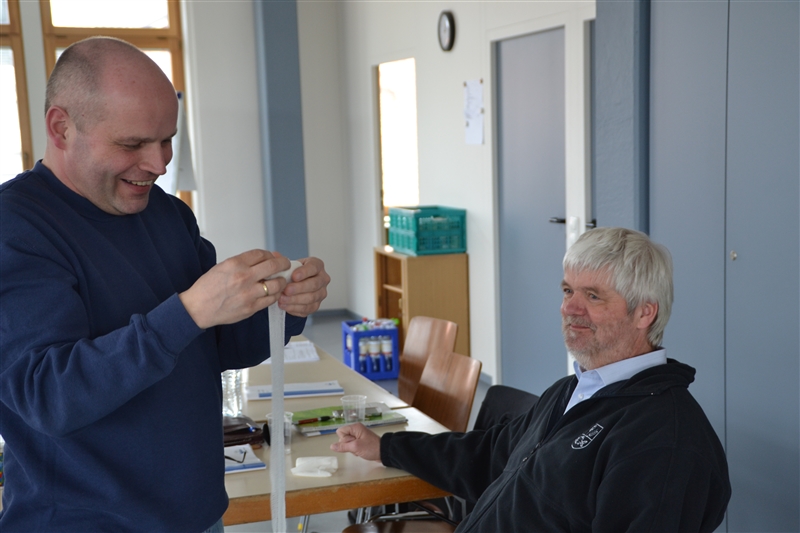 Zunächst noch skeptisch, wie die Mitglieder der jeweils anderen Hilfsorganisation mit Notfällen von A wie Asthma bis Z wie zerebraler Krampfanfall umgehen, entwickelte sich um das Team von Bente Eggert als Leiterin des Kurses ein reger Austausch und eine gute Zusammenarbeit aller Teilnehmer des Kurses.