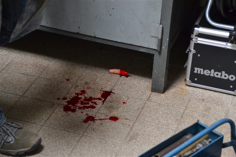 Nach bestandener theoretischer Prüfung ging es dann am letzten Tag anschaulich zur Sache. Das „RUND“-Team der DLRG (Realistische Unfall Darstellung) stellte mit Einfallsreichtum, Theaterblut und großem Engagement typische Szenen aus dem Einsatzalltag eines DLRG-Sanitäters oder First Responders der Feuerwehr dar, die von den Anwärtern unter kritischen Augen von jeweils 2 Prüfern abgearbeitet werden mussten.