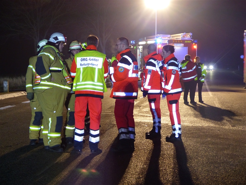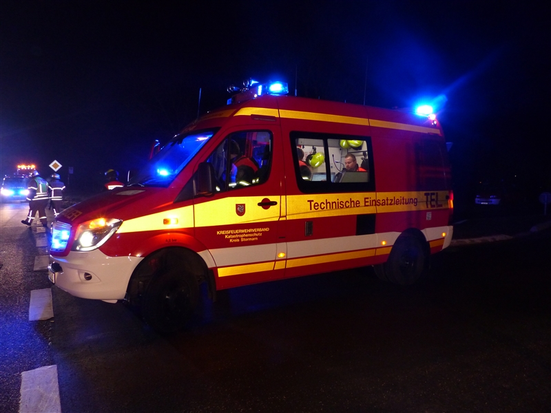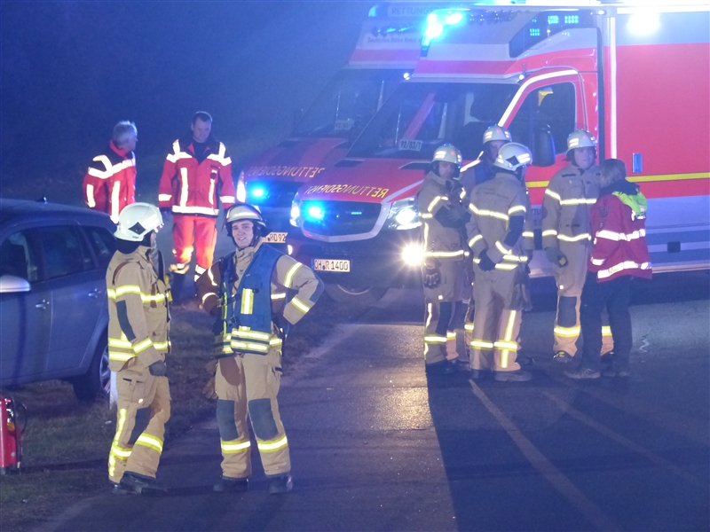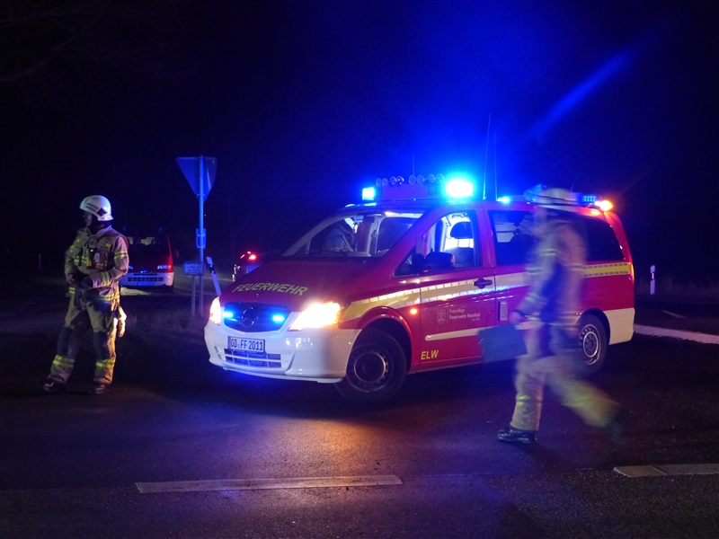 | Auf der Bundesstraße 75 kam es Höhe "Travenhof" zu einem Verkehrsunfall mit zwei beteiligten Fahrzeugen. Insgesamt gab es sechs Verletzte, die bis zum Eintreffen des Rettungsdienstes von der Feuerwehr versorgt wurden. Parallel wurden die Batterien an den beteiligten Fahrzeugen abgeklemmt und ausgelaufene Betriebsstoffe abgestreut. |