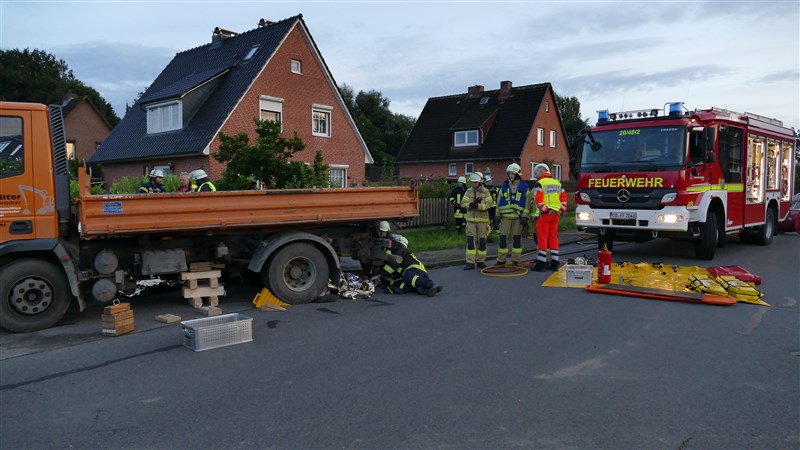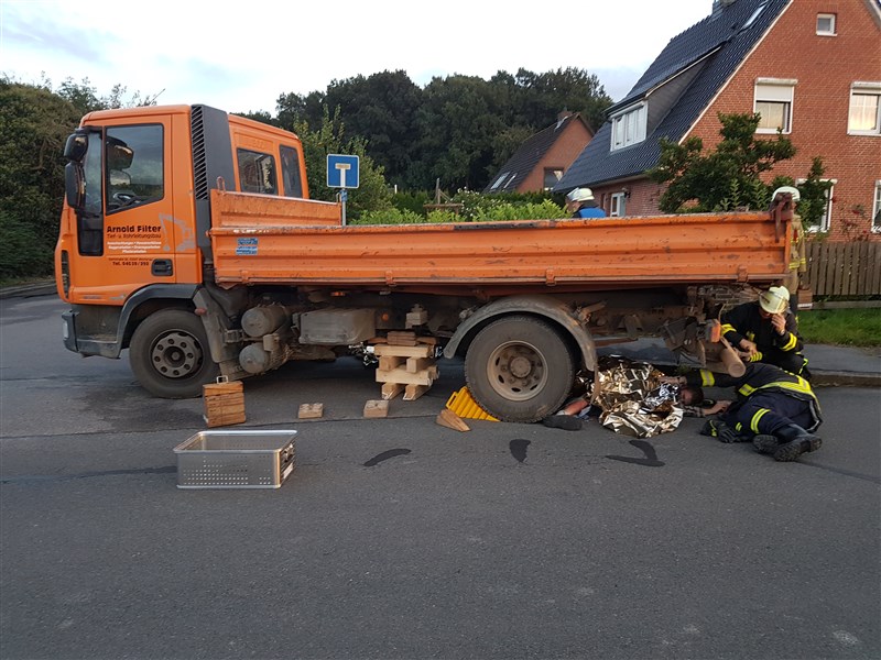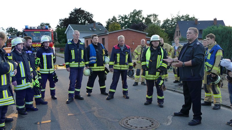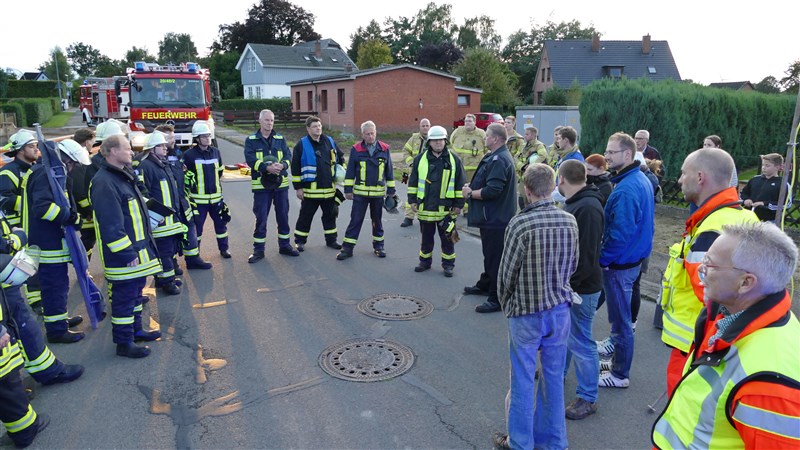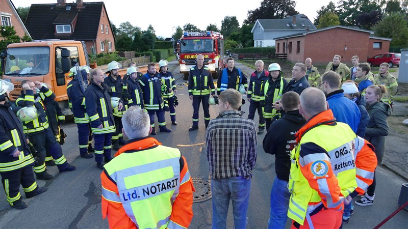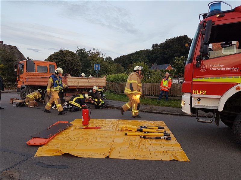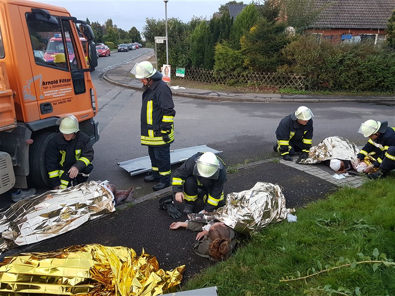 Simuliert wurde ein Unfall, bei dem ein Lkw in eine Personengruppe gefahren ist. Es mussten viele verletzte Personen versorgt und eine unter dem Lkw eingeklemmte Person befreit werden. Ziel der Übung war es, in Situationen mit vielen verletzten und beteiligten Personen, die Übersicht zu behalten und den Einsatz in Abschnitte zu gliedern. Aus diesem Grund waren auch Vertreter der Einsatzleitung Rettungsdienst (Leitender Notarzt und Organisatorischer Leiter Rettungsdienst) zu Gast, um die Feuerwehrführung mit hilfreichen Tipps und sachkundigem Rat zu unterstützen.