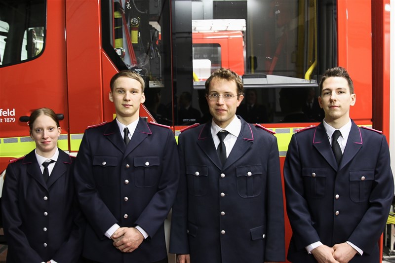 zur/zum Oberfeuerwehrfrau/mann: Saskia Teichmann, Lars Meßer, Peer Franzen, Dennis Gerber, Moritz Hoffmann