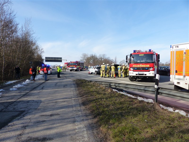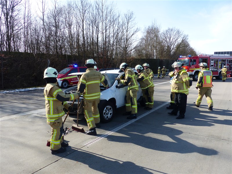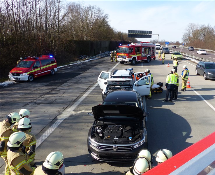 Auf der Autobahn 1 in Fahrtrichtung Lübeck kam es zu einem Verkehrsunfall mit drei beteiligten PKW. Entgegen der Alarmierungsmeldung, wonach mehrere Personen noch in ihren Fahrzeugen eingeklemmt sein sollten, waren bei unseren Eintreffen bereits alle Beteiligten aus den PKW befreit. Wir unterstützen den Rettungsdienst bei der Erstversorgung der Verletzten, bis zum Eintreffen aller angeforderten Rettungsmittel an der Unfallstelle. Im Anschluss wurden die Unfallfahrzeuge spannungsfrei geschaltet, ausgetretende Betriebstoffe abgestreut und die Bergungsarbeiten unterstützt.