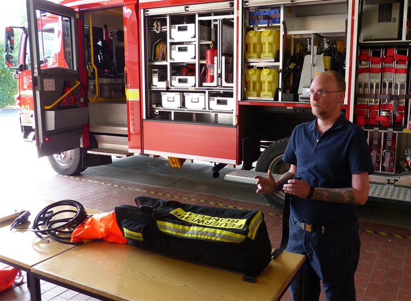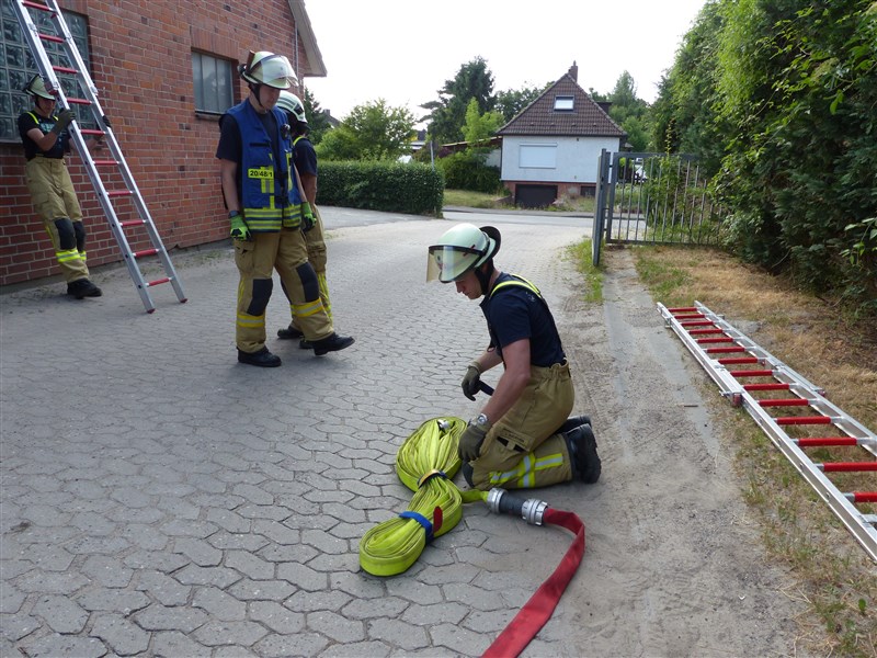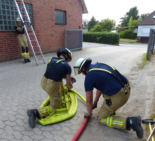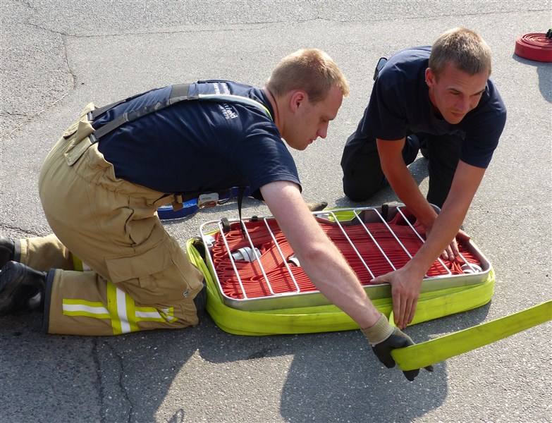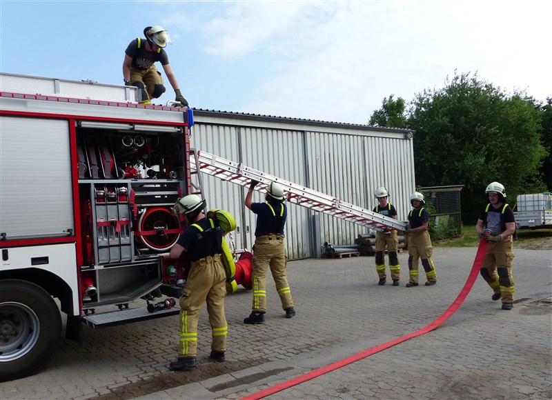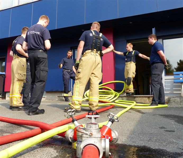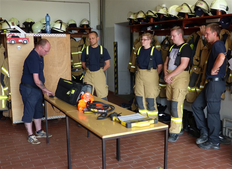 Hinter diesem Begriff verbirgt sich eine Trainingseinheit, in der wichtige Grundhandgriffe und Vorgehensweisen gefestigt werden sollen. Den Anfang machte ein Theoriepart mit dem Thema: Einsatzablauf und Einsatzentwicklung. Anhand einer fiktiven Lage wurde den Teilnehmern ein anfangs kleiner Einsatz beschrieben, welcher sich aufgrund verschiedener Faktoren und örtlichen Gegebenheiten zu einer umfangreichen Lage entwickelte. Insbesondere wurde hier das richtige Abgeben einer Lagemeldung an die Leitstelle, Kräftemanagement und Nachalamrierung, sowie die Ordnung an der Einsatzstelle erläutert.