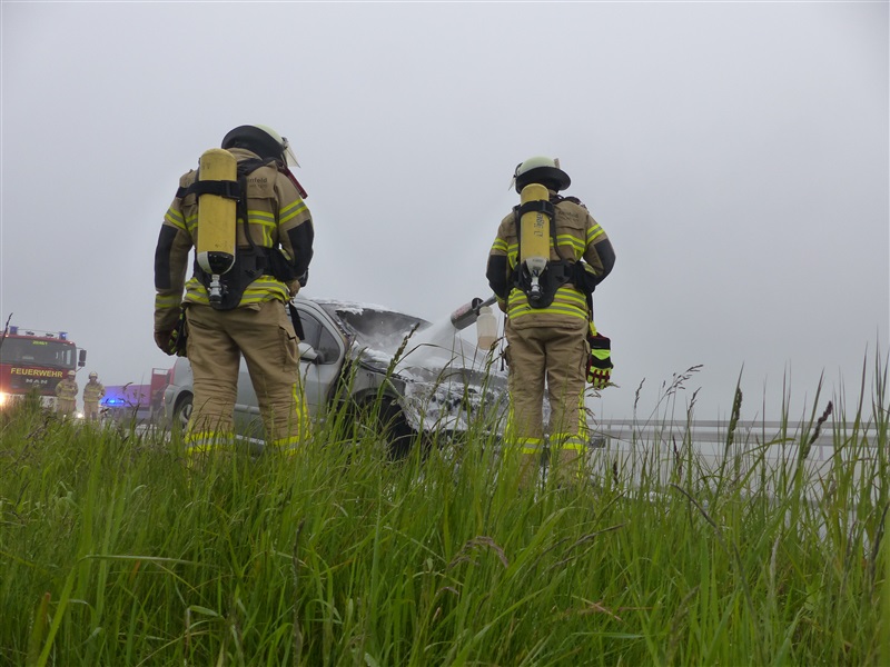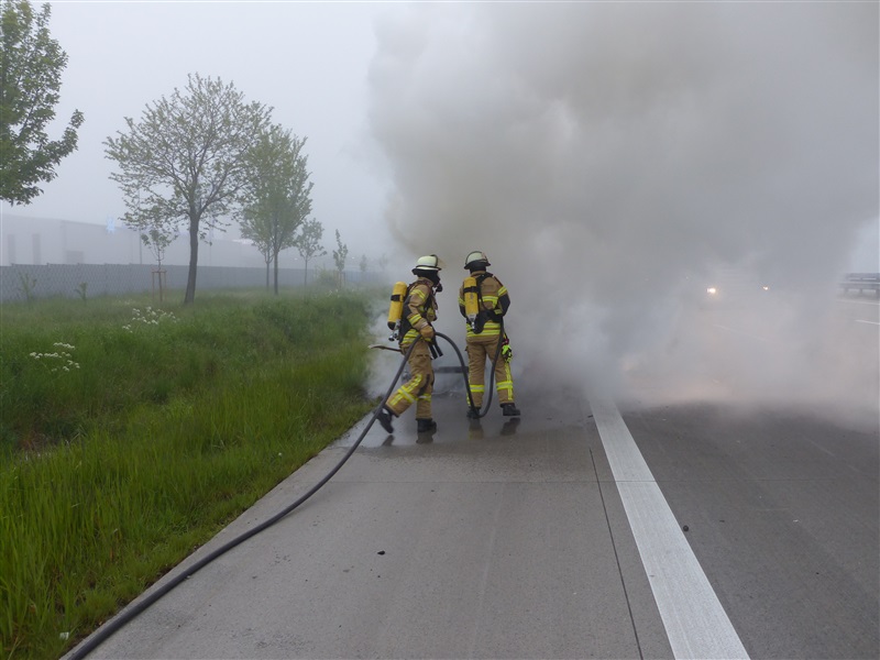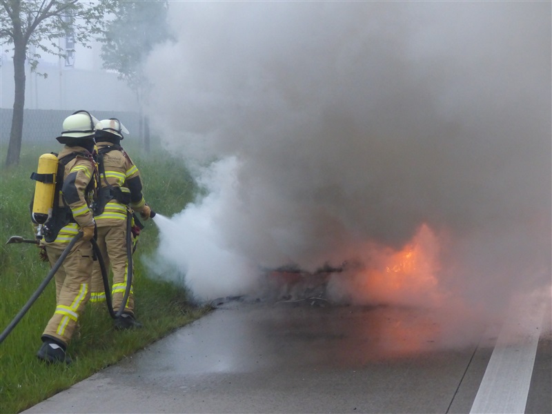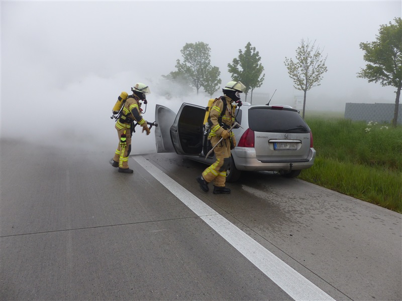Vermutlich Aufgrund eines technischen Defekts, begann ein PKW im Motorraum zu brennen. Wir löschten das Feuer mit dem S-Rohr und führten mittels Wärmebildkamera und Mehrbereichsschaummittel die Nachlöscharbeiten durch.
