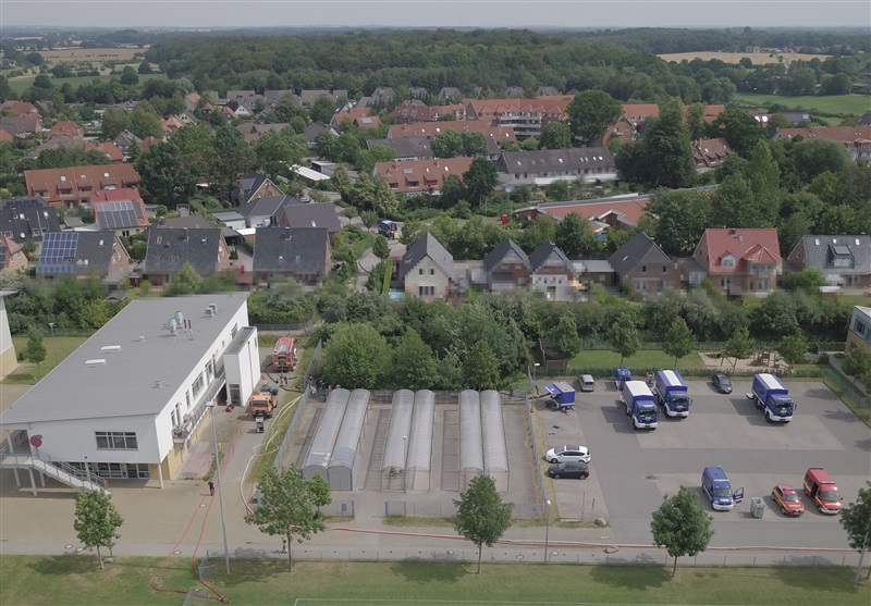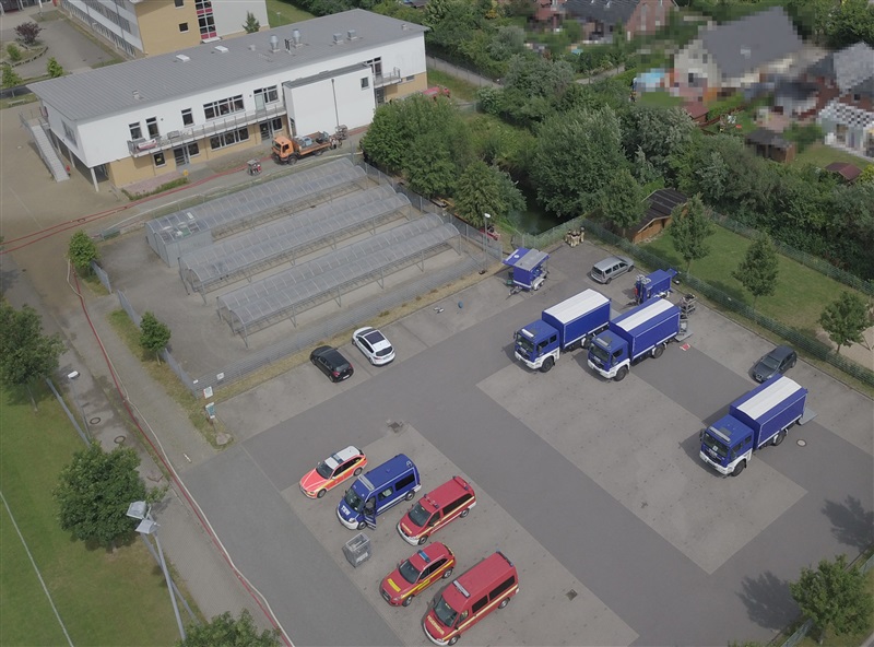 Übungsobjekt war das Regenrückhaltebecken (ca. 200.000 Liter) der Immanuel-Kant-Schule, welches im Einsatzfall auch durch uns als Feuerwehr für die Löschwasserentnahme dienen soll. Auf Anfrage der Stadtverwaltung sollte das Becken für Instandhaltungs- und Sanierungsarbeiten weitestgehend leergepumpt werden.