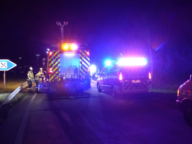 Nach einem Unfall zwischen einem PKW und dem Auflieger eines LKW kam es, während der Bergungsarbeiten durch den Abschleppdienst, zu einer Rauchentwicklung an dem beteiligten PKW. Bei Eintreffen der ersten Einsatzkräfte konnte keine weitere Rauchentwicklung festgestellt werden. Wir kontrollierten beide Fahrzeuge mittels der Wärmebildkamera, ebenfalls ohne Feststelung.