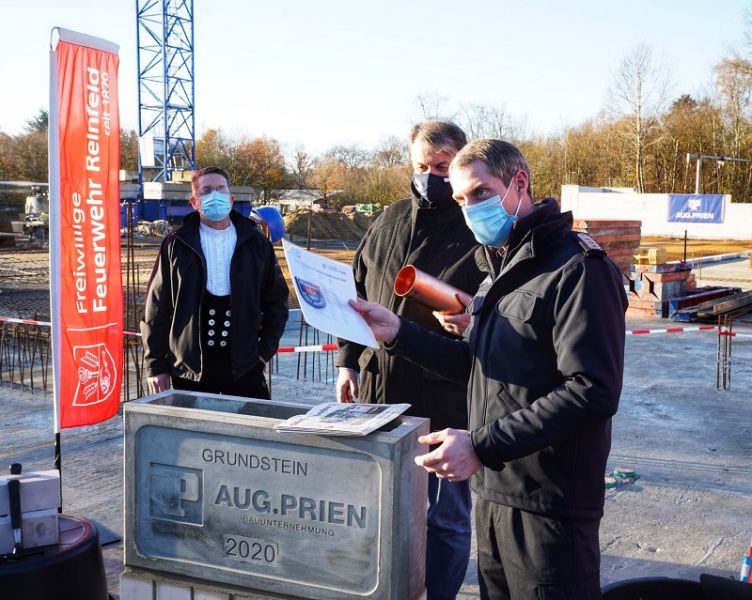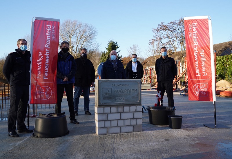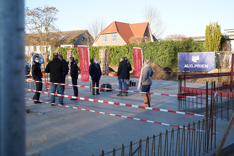 In einer kleinen Feierstunde kamen coronabedingt nur wenige Vertreter der Feuerwehr, der Verwaltung und der Baufirma August Prien zusammen.