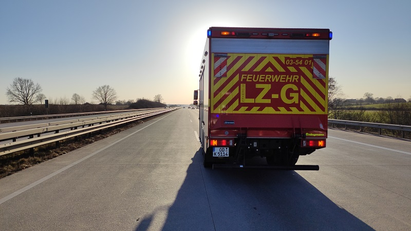Auf unserem Rückweg von Einsatz #010 ereignete sich auf der Autobahn in Fahrtrichtung Hamburg ein Unfall mit zwei beteiligten PKW, bei dem zwei Insassen leicht verletzt wurden. Wir sicherten die Einsatzstelle, unterstützten den Rettungsdienst, haben auslaufende Betriebsstoffe abgebunden und die PKW stromlos geschaltet.