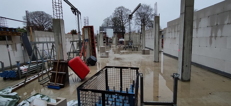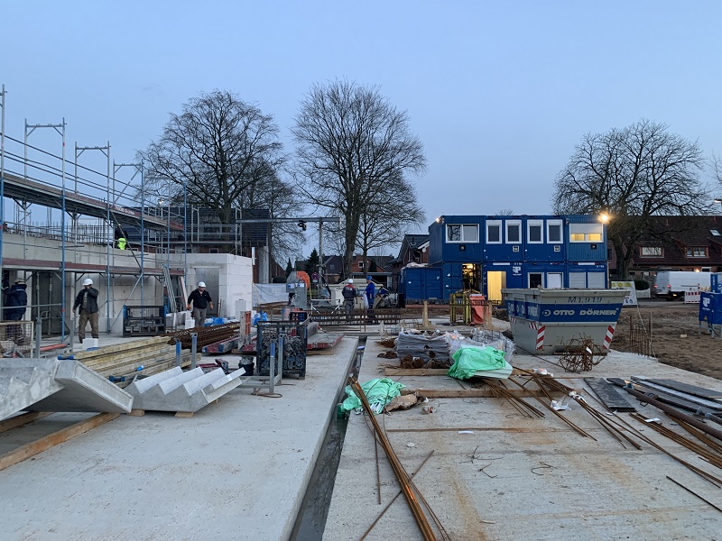 Es geht hoch hinaus – unser Erdgeschoss steht! Für jeden ist von außen sichtbar: Unsere Baustelle in der Ahrensböker Straße wächst in die Höhe.