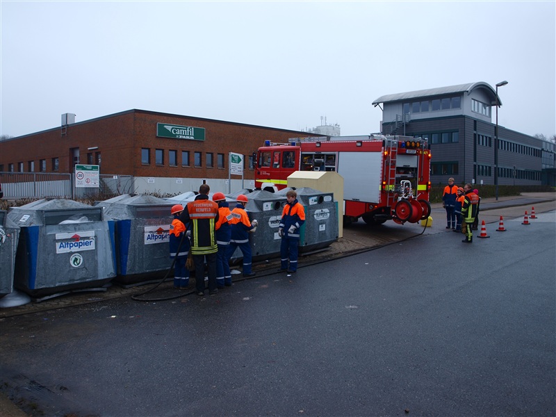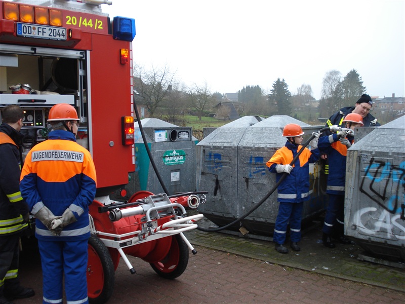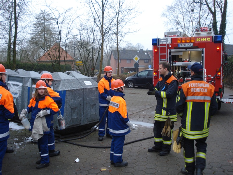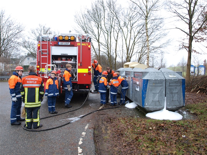 Wie auch in den letzten Jahren traf sich die Jugendfeuerwehr Reinfeld, um die Papiercontainer in Reinfeld und Umgebung einzuschäumen. Dies ist eine vorbeugende Maßnahme, damit die Container in der Silvesternacht nicht angezündet werden können. Mit zwei Löschfahrzeugen machten sich die Jugendlichen und ihre Betreuer ans Werk. Nach rund dreistündiger Arbeit und der anschließenden Reinigung der Fahrzeuge gab es für jeden noch einen Berliner zur Stärkung für die kommende Sylvesterparty.