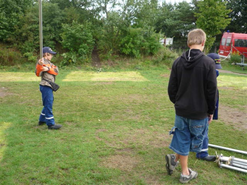 Wir wurden in drei kleinen Gruppen durch das Gebäude, die Fahrzeughalle, die Leitstelle und Fahrzeuge geführt. Auf dem Weg zurück zum Zeltplatz kamen wir an einer Aussichtsplattform im Truppenübungsplatz vorbei, an dem wir eine kleine Rast eingelegt haben. Weil es ein niederschlagfreier Tag war, bauten wir heute schon einige Zelte ab, damit wir sie nicht mehr in der Wache trocknen müssen. Abends machten wir eine Feed-back-runde, in der wir Lob und Anregungen los werden konnten.