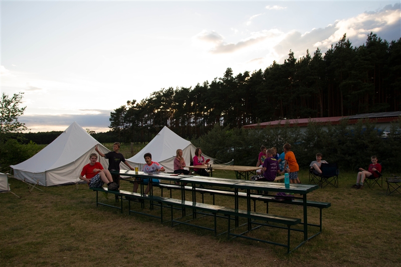 Die erste Woche der Sommerferien bedeutet Spiel, Spaß und Abwechslung, denn auch in diesem Jahr fuhren wir mit insgesamt 22 Personen, darunter sechs Betreuer, ins Sommerzeltlager. Dieses Mal schlugen wir unsere Zelte auf dem Gelände des Campingparks "Buntspecht" auf, der direkt am Ferchesarer See, westlich von Berlin und mitten im Havelland liegt. In der Woche haben wir bei den unterschiedlichsten Aktivitäten viel Spaß gehabt, wo der Filmpark Babelsberg und das Baden im nahegelegenen See zu nennen sind. Interessant wurde es bei der Stadtführung durch Berlin entlang der ehemaligen innerdeutschen Grenze, sowie beim Besuch der Berufsfeuerwehr Berlin-Neukölln und der Freiwilligen Feuerwehr Rathenow. Am Freitag besuchten die "Älteren" von uns die KZ-Gedenkstätte Sachsenhausen, während die Jüngeren das gute Wetter mit leckerem Eis am Badesee verbrachten. Auch kulinarisch gab es nichts auszusetzen; von Gyros über Spaghetti und Grillen bis hin zu Kartoffelsalat mit Würstchen war alles dabei.