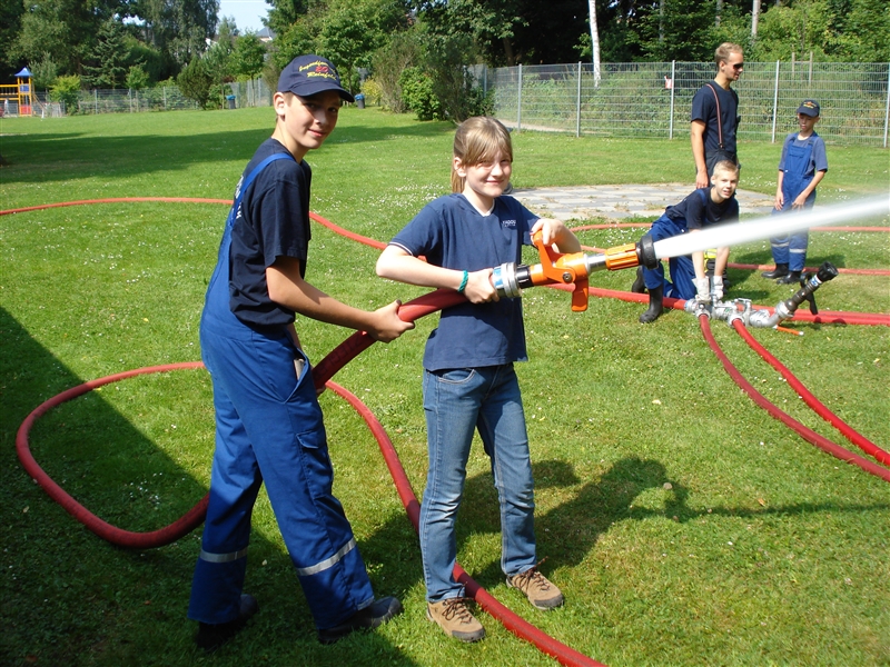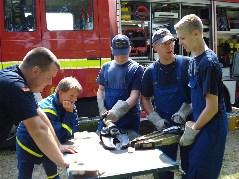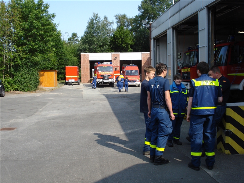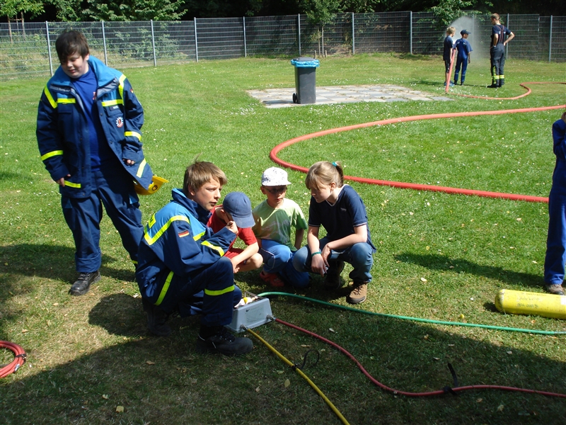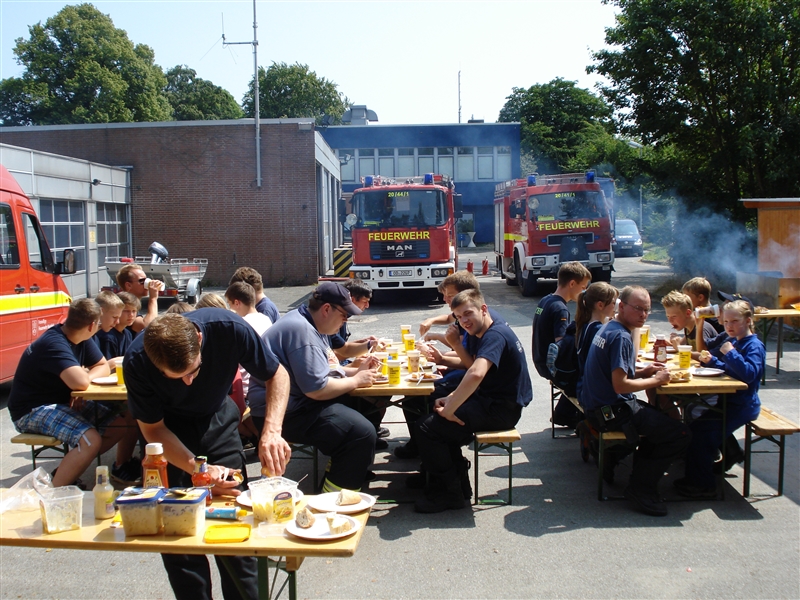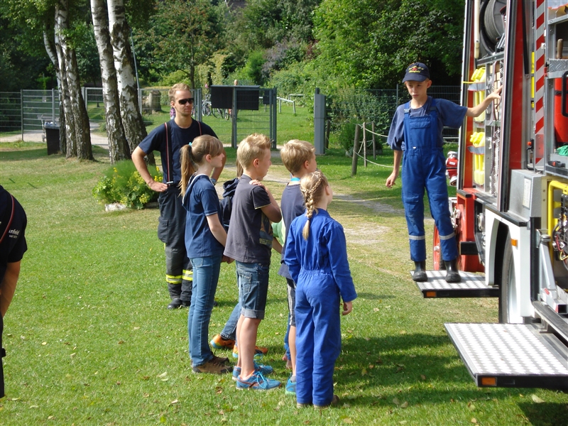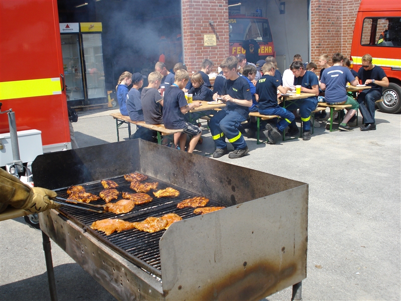 Zusammen mit dem THW Bad Oldesloe führten wir eine Ferienpassaktion in der Badeanstalt am Herrenteich durch. An verschiedenen Stationen konnten die Kinder unter anderem mit Hebekissen einen LKW anheben und erleben, wie es sich anfühlt, ein Strahlrohr in den Händen zu halten. Dabei sind zwar nicht alle trocken geblieben, aber das war bei dem guten Wetter auch gar kein Problem. Zudem konnten die "Kleinen" ihr Geschick mit dem Spreizer beweisen, als es darum ging, Tischtennisbälle unversehrt zu greifen und wieder abzulegen. Nebenbei führten wir sie um eines unserer Fahrzeuge und erklärten die vielen Gerätschaften und ihre Einsatzmöglichkeiten. Zu guter Letzt durfte jeder eine Runde mit unserem Boot auf dem Herrenteich drehen. Zurück an der Wache grillten wir gemeinsam und kühlten uns mit Wasserspielen ein wenig ab.