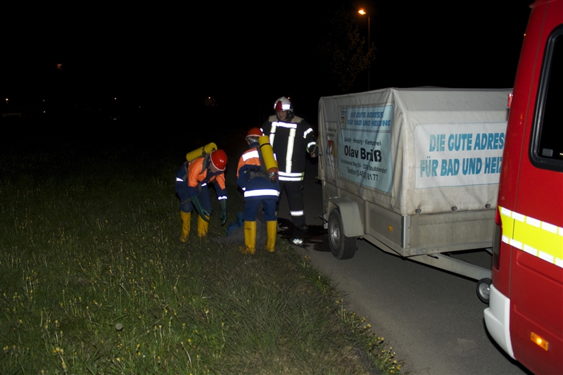 Zum Abendbrot gab es Pizza, die fast restlos verputzt wurde. Der Abschlusseinsatz des Tages führte uns in das Gewerbegebiet an der Autobahn, bei dem ein Transporter eine unbekannte Flüssigkeit verlor – Gefahrguteinsatz! Aber auch dieser letzte Einsatz konnte erfolgreich beendet werden.