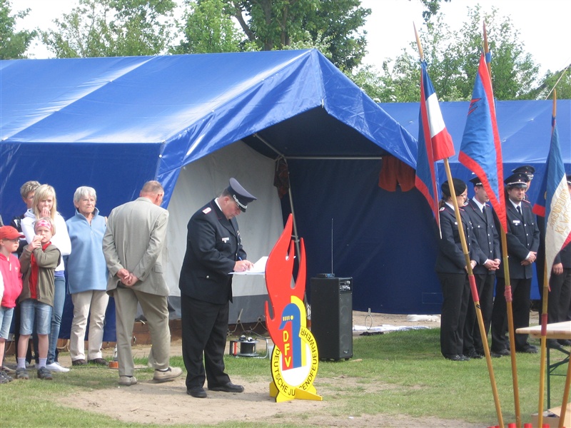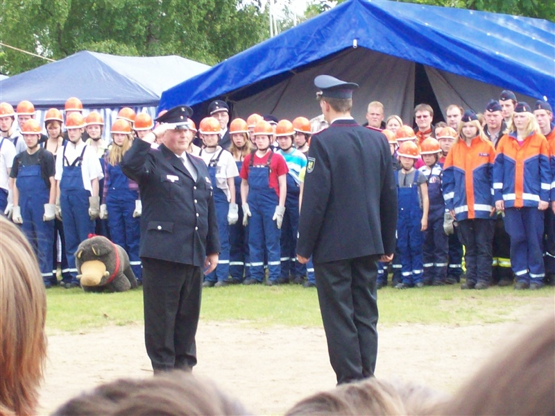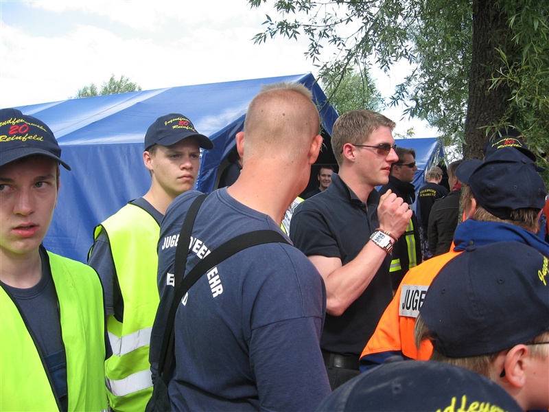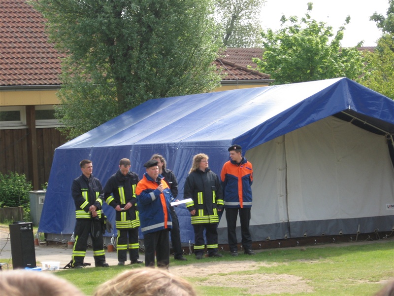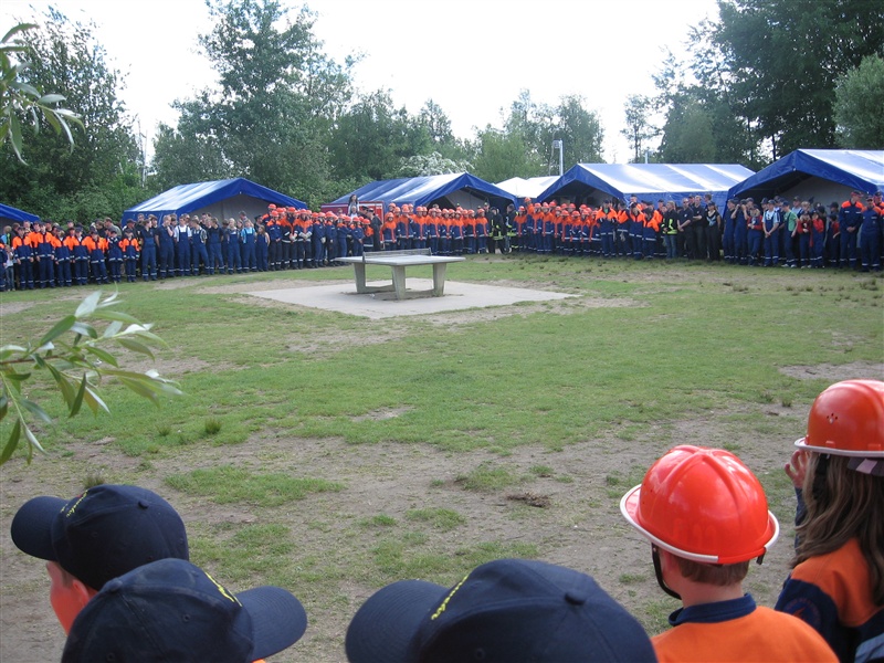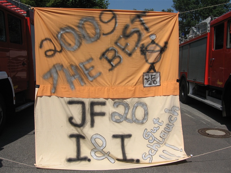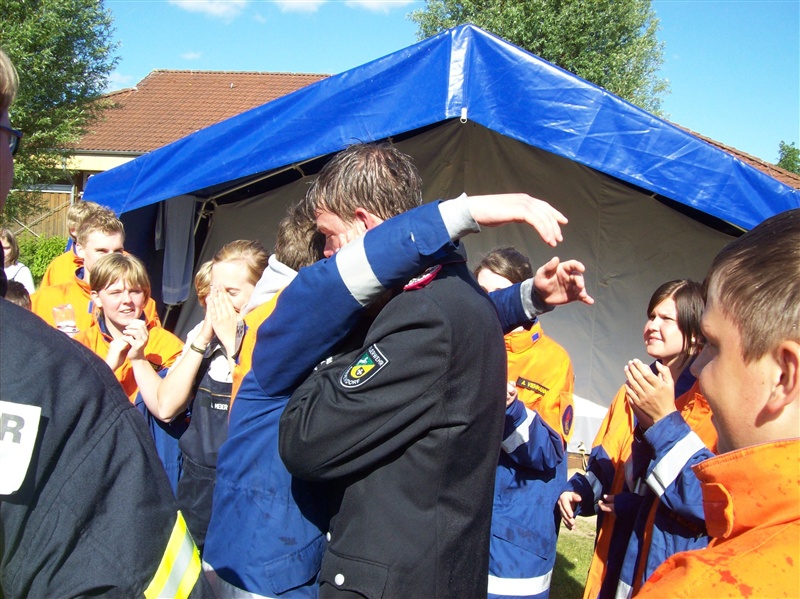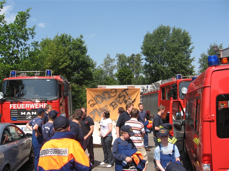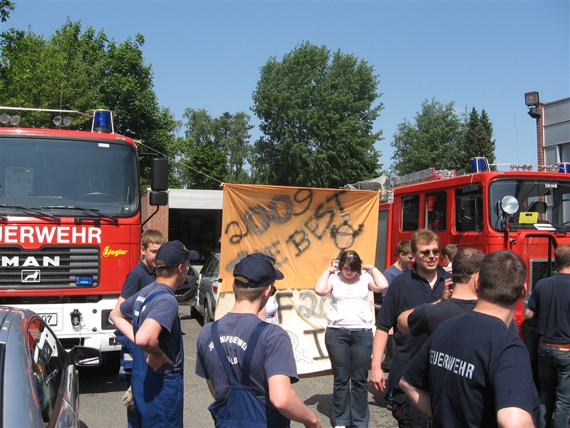 Tag 4: Um 11 Uhr am Sonntag stand der letzte offizielle Teil des Kreiszeltlagers 2009 auf der Tagesordnung: die Verabschiedung. Nach einer kurzen Rede, wurden alle Jugendfeuerwehren nach hause "entlassen". An unserer Wache angekommen, wurden wir mit Wasserfontänen und einem großen Banner von aktiven Mitgliedern der Freiwilligen Feuerwehr Reinfeld feierlich empfangen, die uns zu unseren zwei ersten Plätzen gratulierten.