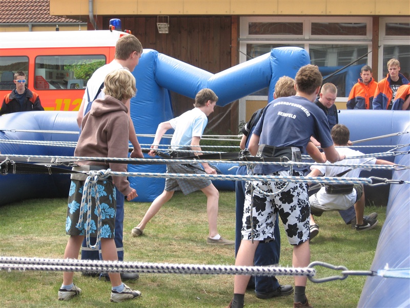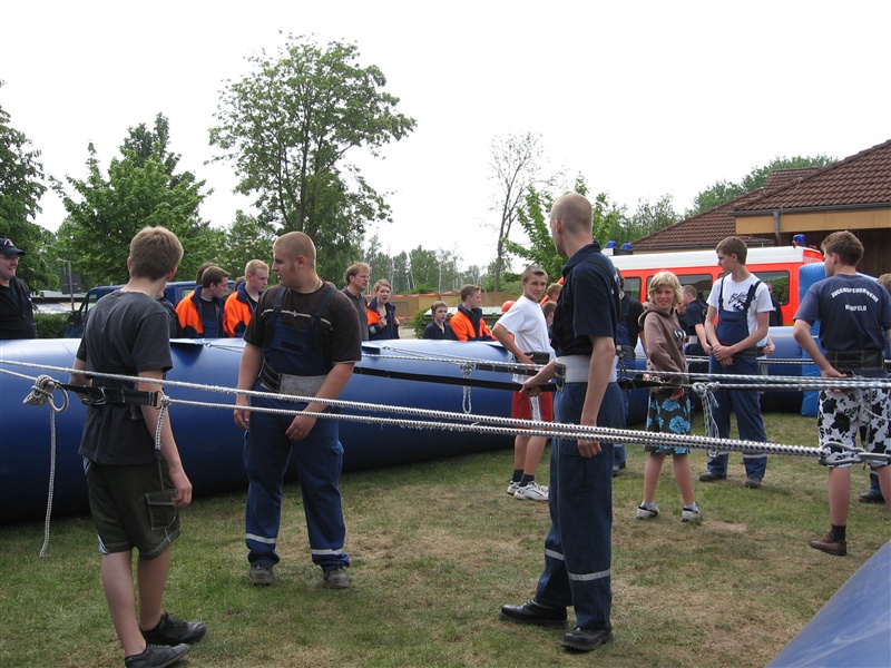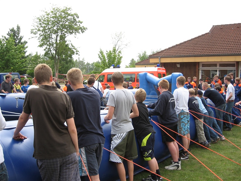 Bei den "Spielen ohne Grenzen", müssen den ganzen Tag über, viele Spiele unterschiedlichster Art, wie zum Beispiel Schlauchbootrennen, Kistenstapeln und Denkspiele, bewältigt und gemeistert werden. Bei jedem Spiel, haben wir unser Bestes gegeben - immer in der Hoffnung, einen der ersten Plätze von den insgesamt 24 Jugendfeuerwehren ergattern zu können.