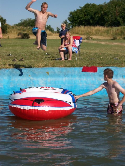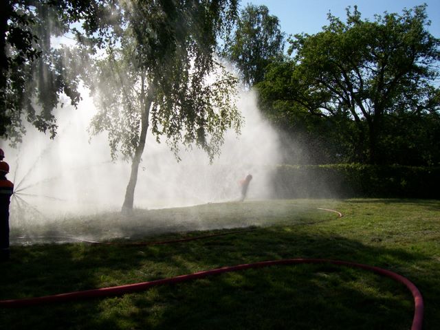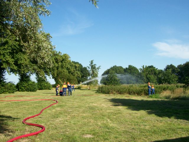 Tag 7: Am Nachmittag fuhren wir eine gemeinsame Übung mit der Jugendfeuerwehr Neubukow. Aufgrund des guten Wetters kam es schonmal vor, dass nicht nur das "Feuer" Ziel des Wasserstrahls wurden. Am Abend wurden wir von einer Gruppe von Jugendfeuerwehren, die ebenfalls auf unserem Zeltplatz waren, zu einer Nachtwanderung eingeladen, die für einige erst um 2 Uhr endete.