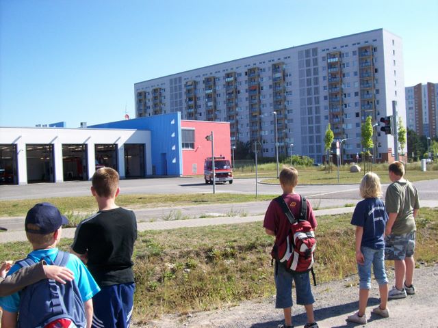 Tag4: Die Feuerwehr Neubukow lud uns zu einer Führung durch ihre Wache und ihre Stadt ein. Die Schliemann-Gedenkstätte und die Fischtreppe nutzten wir für kleine Zwischenstopps. Anschließend ließen wir zusammen den Tag gemütlich mit Fleisch und Würstchen vom Grill am Lagerfeuer ausklingen.