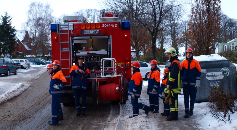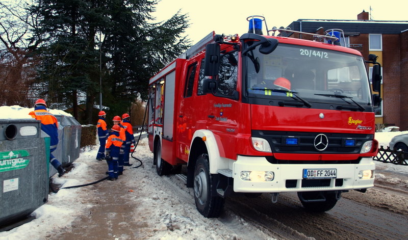 Gegen 10:00 Uhr war es mal wieder so weit: Wie jedes Jahr galt es, alle Papiercontainer in Reinfeld einzuschäumen, damit die "Großen" nachts nicht los müssen, um einen Altpapiercontainer zu löschen. Mit viel Spaß, aber etwas kalten Füßen, bewältigten wir die Aufgabe und gönnten uns nach getaner Arbeit noch einen warmen Kakao. Gegen 13:30 Uhr waren wir wieder zurück an der Wache und durften, nachdem die Löschfahrzeuge wieder sauber waren, nach Hause gehen.