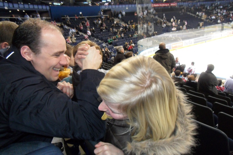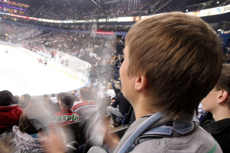 Viele Jugendliche feuerten das erste Mal die "Haaaambuuuurg Freeeeezeeers" live mit an. Und so war es gar nicht so leicht, das schnelle Spiel auf dem Eis und vor allem den Puck im Auge zu behalten. Außer dem 1:4-Spielendstand gab es sonst nichts, was die gute Laune beeinflussen konnte.