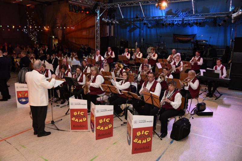 Der Empfang des Feuerwehrballs wurde musikalisch untermalt durch den Musikzug der FF Reinfeld. Die Gäste erfreuten sich in der 1. Stunde an vielen Musikstücken aus dem aktuellen Repertoire. Die Musiker zeigten sich im neuen Outfit mit den Westen "Big Band / Musikzug Reinfeld" zum 1. Mal dem Reinfelder Publikum.